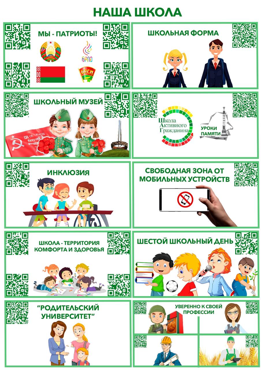 Теперь в одном месте собрана самая актуальная информация, чтобы ответить на самые популярные вопросы о школе: почему введена школьная форма, как выбрать будущую профессию, где можно или всё-таки нельзя пользоваться телефоном, зачем нужен шестой школьный день, что такое БРПО и БРСМ, и зачем в них вступать, как внести свой вклад в развитие школьного музея и многое другое! Достаточно использовать qr-код на плакате, перейти по ссылке и получить ответ на интересующий вопрос.
